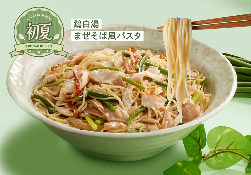 鶏の旨みが凝縮したまろやかでコクのあるソースをパスタに絡めて、鶏白湯まぜそば風にアレンジしました。